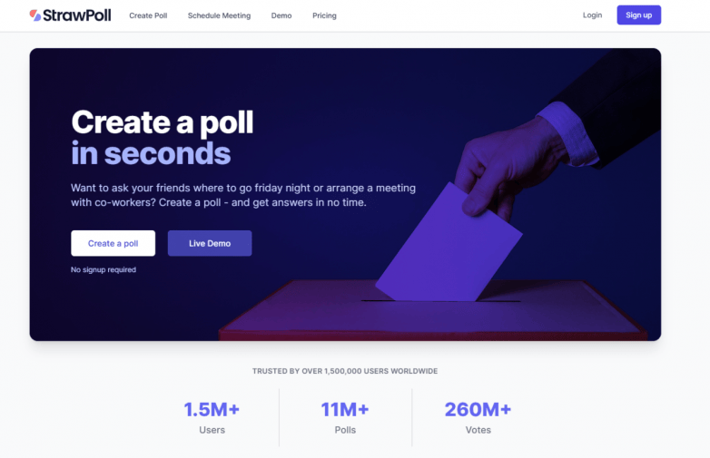 StrawPoll一个免费的在线投票工具,专注于创建简单的投票,支持匿名投票。