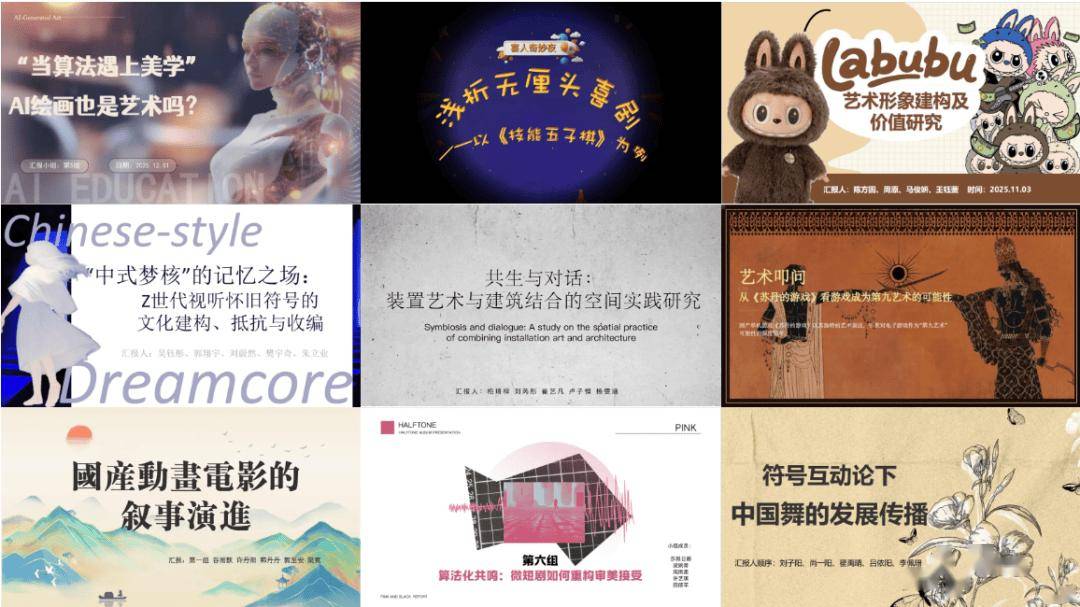 “艺研新语”栏目将连载呈现学院戏剧影视专业硕士核心课程《艺术研究理论与方法》的研创成果,同学们不再局限于传统艺术门类的解读,而是以跨媒介、跨学科视角,将艺术理论、文化研究、媒介传播等方法灵活运用于具体课题,探讨AI绘画的本体性危机、艺术潮玩的情感经济学、梦核美学的潜意识重构、抽象喜剧“梗”文化的传播、艺术装置与建筑的空间实践、电子游戏作为“第九艺术”的可能性……