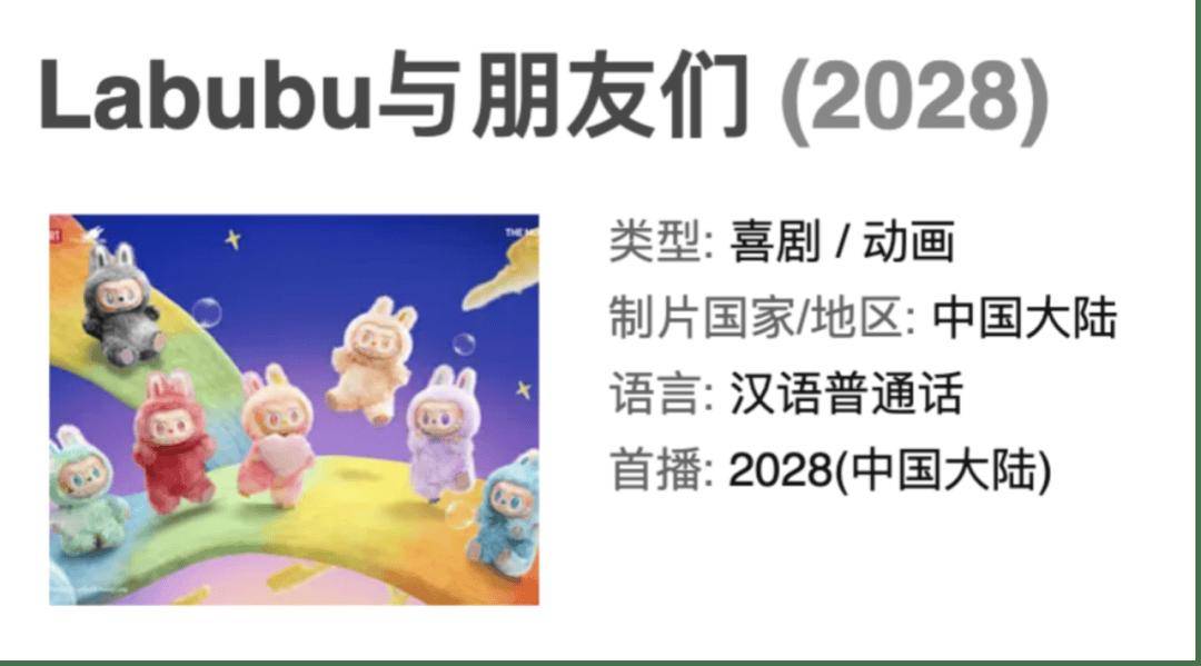 一是通过影视化赋能,2025年规划《LABUBU与朋友们》动画短片,打造“潮玩版《疯狂动物城》”;THE MONSTERS大电影项目也计划于2026年上映,让Labubu的艺术形象在光影中实现情感共鸣的最大化。