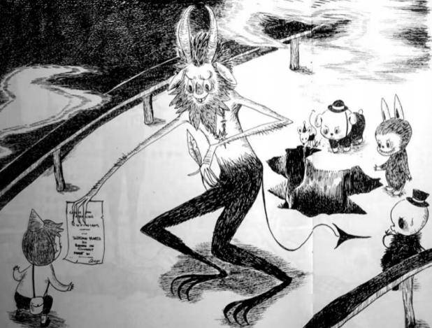 2015年,他在绘本《神秘的布卡》中,第一次让Labubu以“森林精灵”的身份登场。那时的它,已经融合了北欧神话的奇幻色彩与经典绘本的视觉温度,悄然成形。