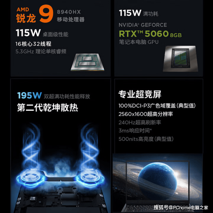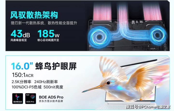 配备16英寸2.5K护眼电竞屏,240Hz高刷新率搭配500nit峰值亮度,画面清晰度与流畅度兼具,同时搭载ACR抗反光技术,可有效减少环境光线反射,即便在强光环境下玩游戏,屏幕画面也能保持清晰,避免反光影响游戏操作;散热升级为风驭散热系统,采用双涡流内循环架构,搭配导流鳍片、叠加式3D铜管与相变导热凝胶,散热效率大幅提升,全程无降频现象,能稳定支撑3A大作长时间满画质运行。