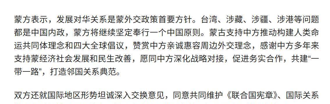不仅如此,蒙古还公开支持中国提出的“人类命运共同体”理念,以及四大全球倡议。