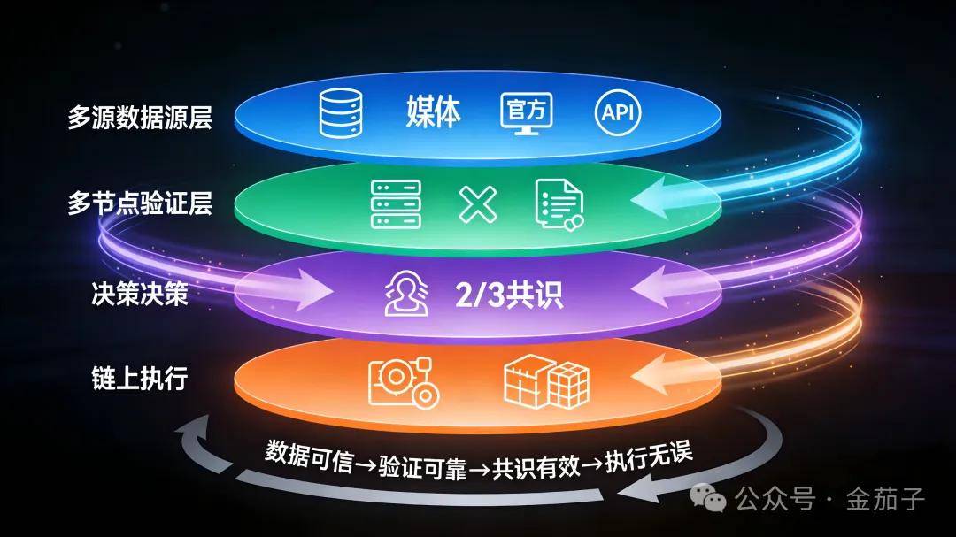 共识确认的真相,最终需要通过链上智能合约完成自动执行,消除人工干预空间: