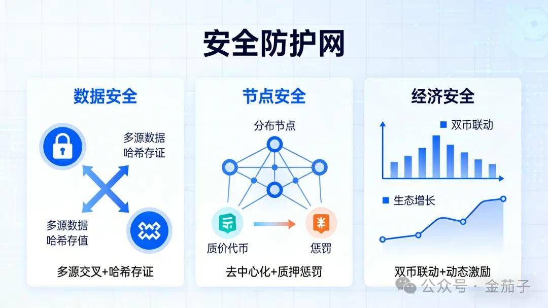如果说四层架构是ChooseLink的“骨架”,那么三重安全机制就是它的“防护网”,从数据、节点、经济三个维度,彻底堵死操纵漏洞: