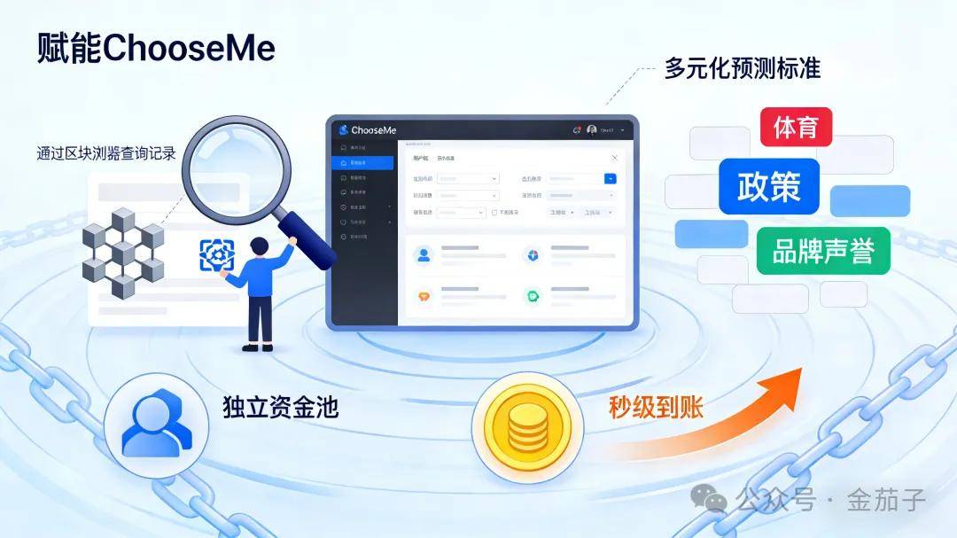 智能合约自动结算:结果上链后,立即触发ChooseMe平台的智能合约,按预设规则完成收益分配,秒级到账;